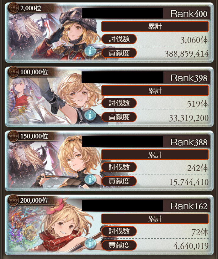 | 勲章50(20万位) | 2,544,904 | 4,640,019 | 182% |