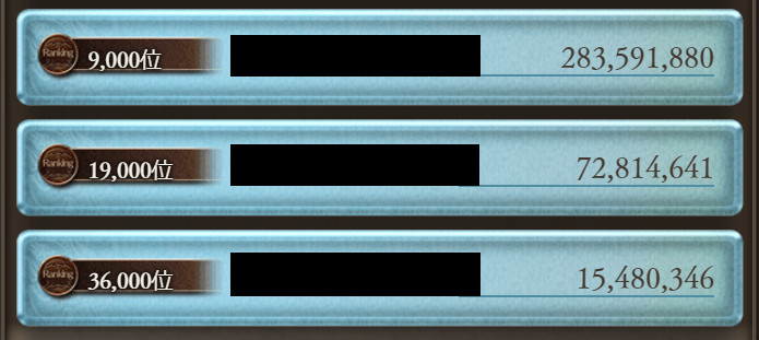 | Aクラス(9000位) | 1,048,896,469 | 113% | 1,238,201,469 |