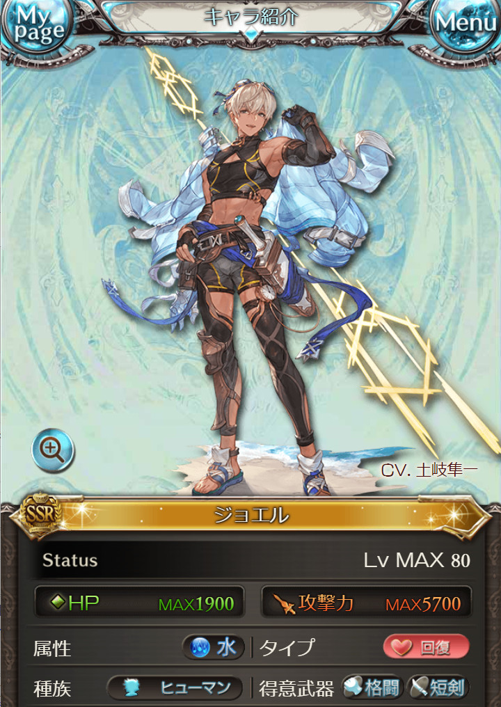 【グラブル】新キャラ:水SSR「ジョエル」の性能・評価・・・サブからフロントに出す使い方になりそうだがサブ枠を賢者と争えるかというと微妙