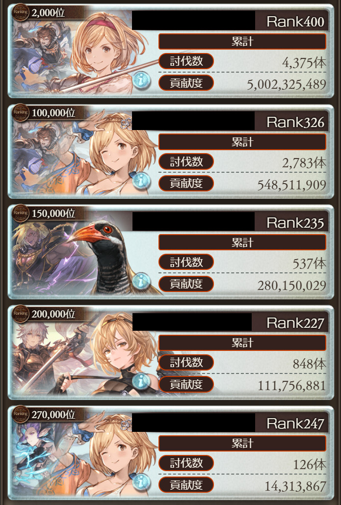 HELL200が前倒しで解禁&HP増加によって貢献度も増えているのもあってか10万位と15万位は増えてますが英雄は下がってます。