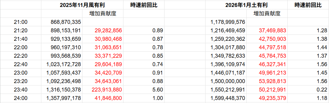 | Bクラス(19000位) | 260,739,639 | 398,220,514 | 153% |