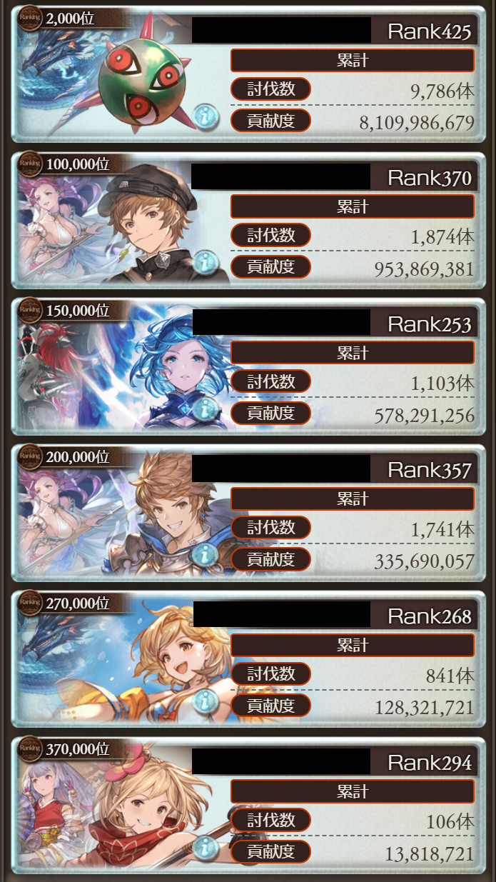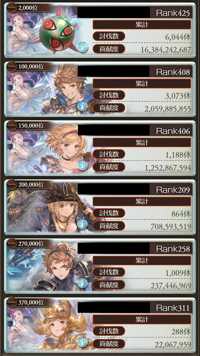 | 勲章50(20万位) | 257,948,413 | 372,903,462 | 145% |
