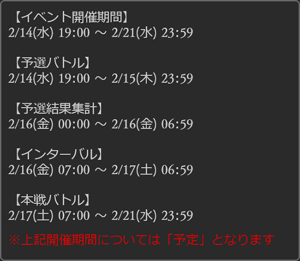 曜日日程は前回と全く同じで土日は本戦1日目と2日目となります。