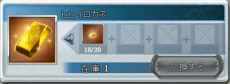ヒヒイロカネ4個目を交換することができません。