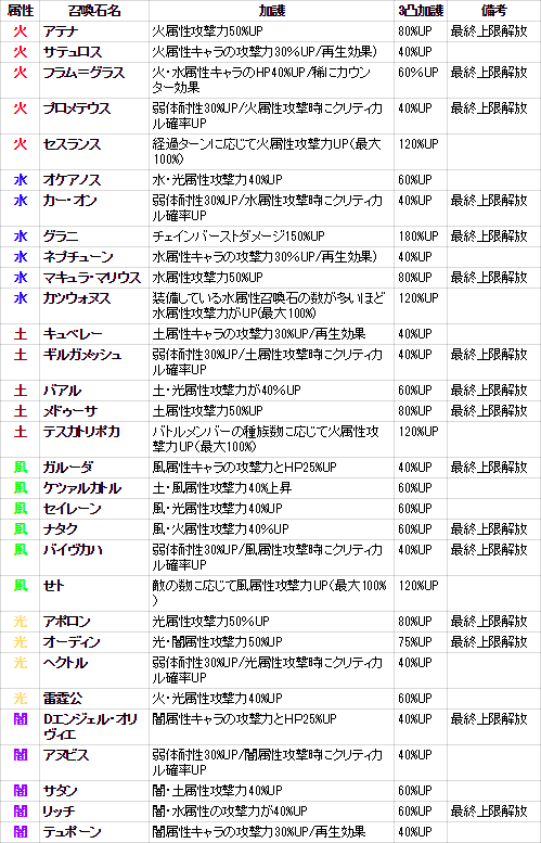 召喚石の場合は選ぶのが楽で火水土風は3凸属性80石か条件付き120石になりますが、条件付き120石はテスカトリポカとセスランス以外は条件が厳しいことに考慮する必要があります。