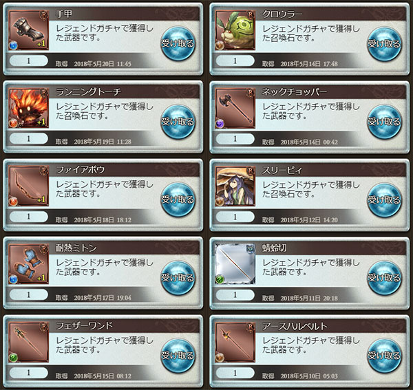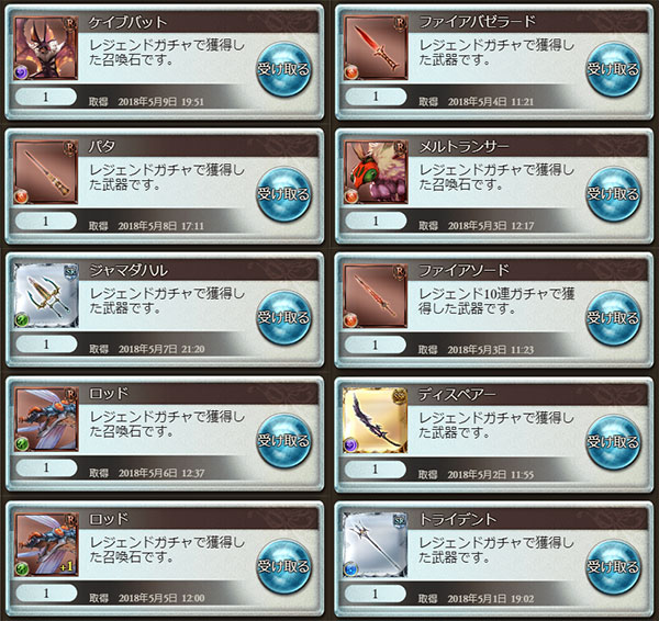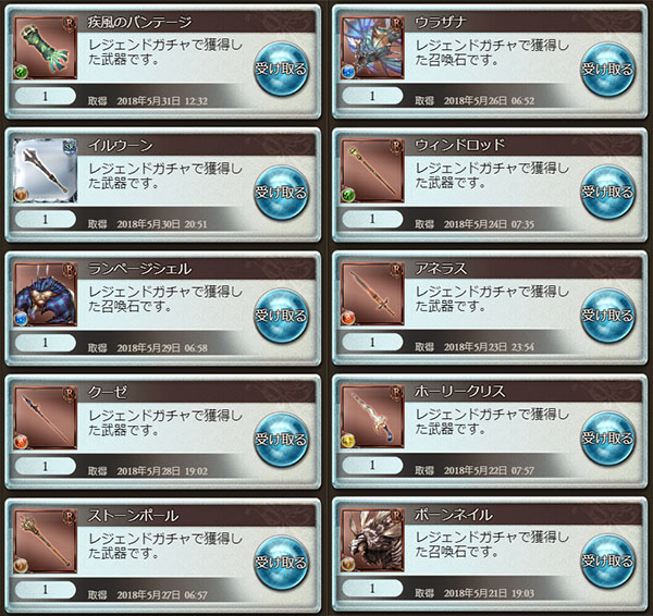 ガチャ結果(1日1回90円2018年5月分)