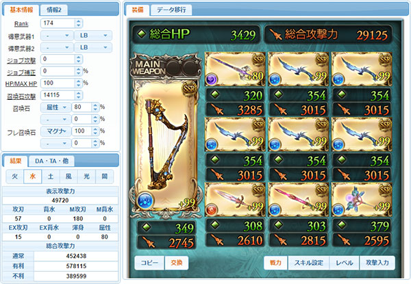 HP100%でマグナ装備より13%ほど火力が高くなりますが、リヴァ召喚を使えないので防御が45%までしか落とせないことを考えるとちょっと微妙かも・・・。