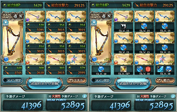 フィンブルのスキル渾身はHPが下がると火力も落ちるので、HP85%でマグナ装備より火力が下がってしまいます。