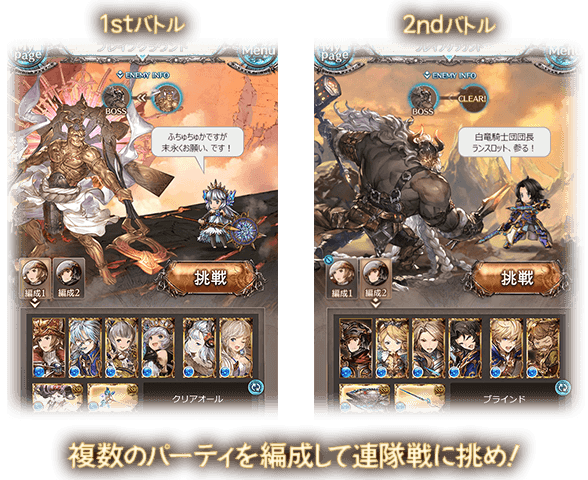 • パーティが全滅orバトルから撤退した場合はバトル挑戦前の状態に戻り、再挑戦可能(2ndでの再挑戦は1sr勝利後の状態から再挑戦)