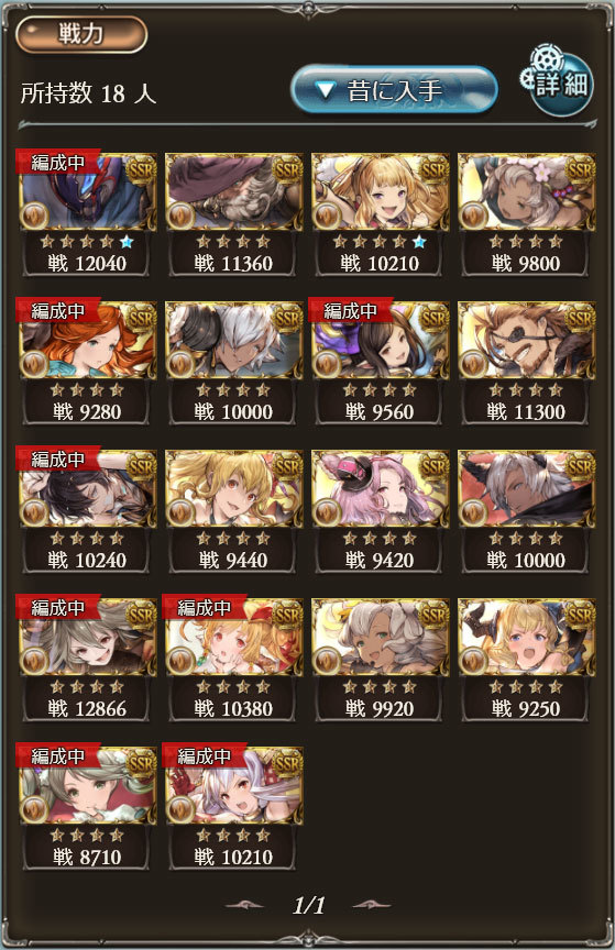 8月古戦場は土有利ですから土属性キャラとなりますが、私はSSRだとハレゼナとユグドラシルを除いて所持しています。