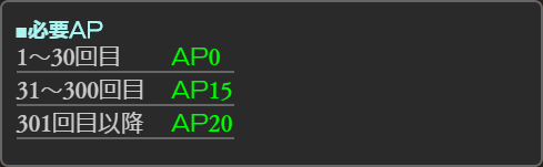 ※クエストリストに表示されるAPは半分となった数値が表示されます