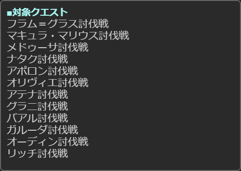 ※イベントクエストは対象外となります