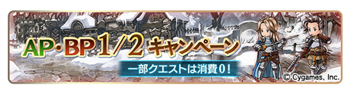 期間中、共闘クエストにおける消費APが半分となります。