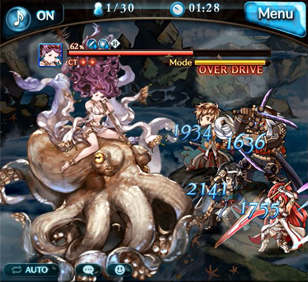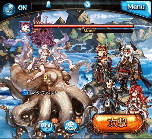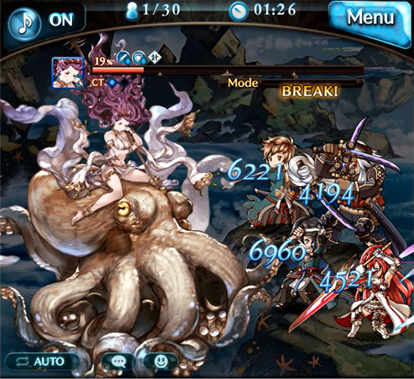 | HP50% | アパーム・ナパート 水属性多段攻撃/味方全体に奥義ゲージDOWN(20%/2T)/水牢(スリップダメージ1000/2T) ※水牢:毎ターンHPが減少し、HPが回復しなくなる状態。また攻撃が稀にミスになる状態 真の力解放 麻痺解禁 |