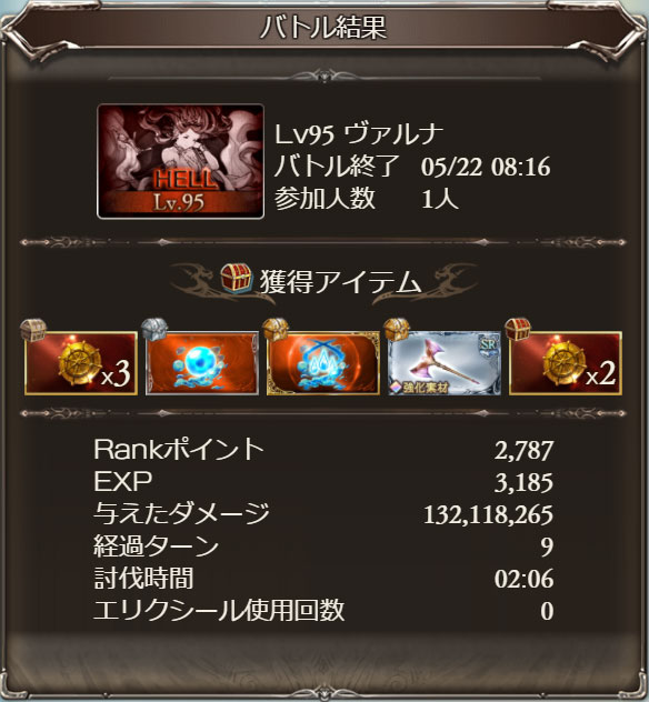 | HELL | AP | チャンク | HP | 貢献度/チャンク単位 | HP1万あたり貢献度 |