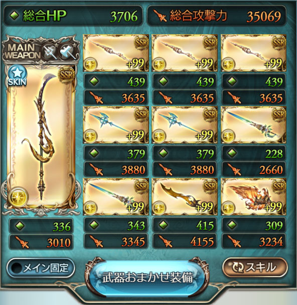 装備はW攻刃(先制も含め)、攻刃+渾身、攻刃+必殺、バハ武器などが良いです。